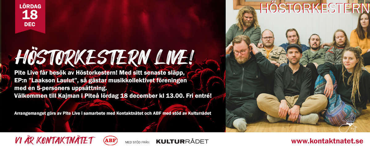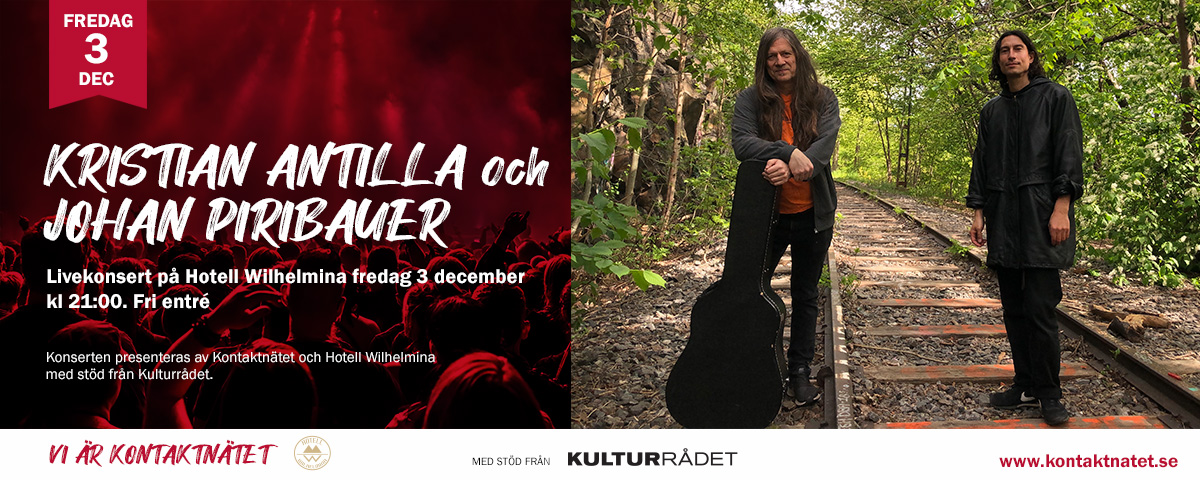 I samband med Kontaktnätets kongress arrangeras en konsert med Kristian Antilla och Johan Piribauer på Hotell Wilhelmina. Konserten äger rum fredag 3 december och börjar 21.00. Fri entré. Konserten arrangeras av Kontaktnätet med stöd av Kulturrådet.