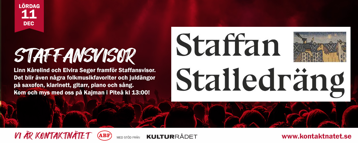 Välkommen till en konsert med Staffansvisor med Linn Kårelind och Elvira Seger som arrangeras på Kajman i Piteå av Pite Live och Kajman i samarbete med Kontaktnätet.