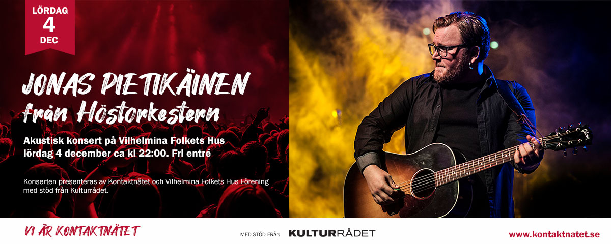 I samband med Kontaktnätets kongress arrangeras en konsert med Jonas Pietikäinen på Vilhelmina Folkets Hus.